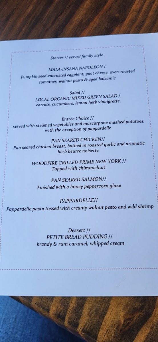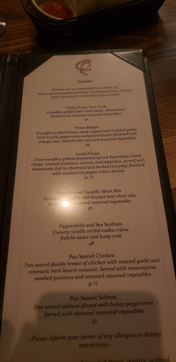 - Entrees: Signature dishes like the Woodfire Grilled Prime Filet and Pappardelle with Sea Scallops offer exquisite elegance, perfectly paired with seasonal vegetables.